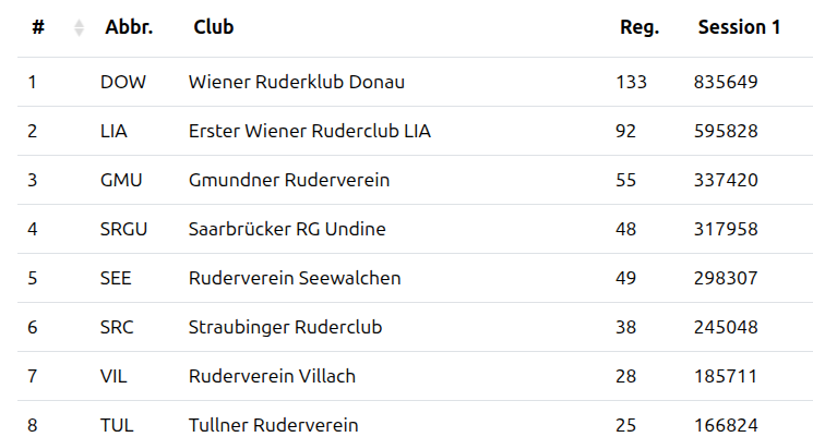 A total of 646 ergometer enthusiasts (274 women and 372 men) went for the machines to rack up a total of 4,190,100 meters. 41 clubs from Ausstria and abroad are already participating. Particularly encouraging is the small group from Sweden, Hammarby IF Roddförening, and our sporting neighbors from Germany, who, after a few new additions, already have 12 clubs represented in the rankings.